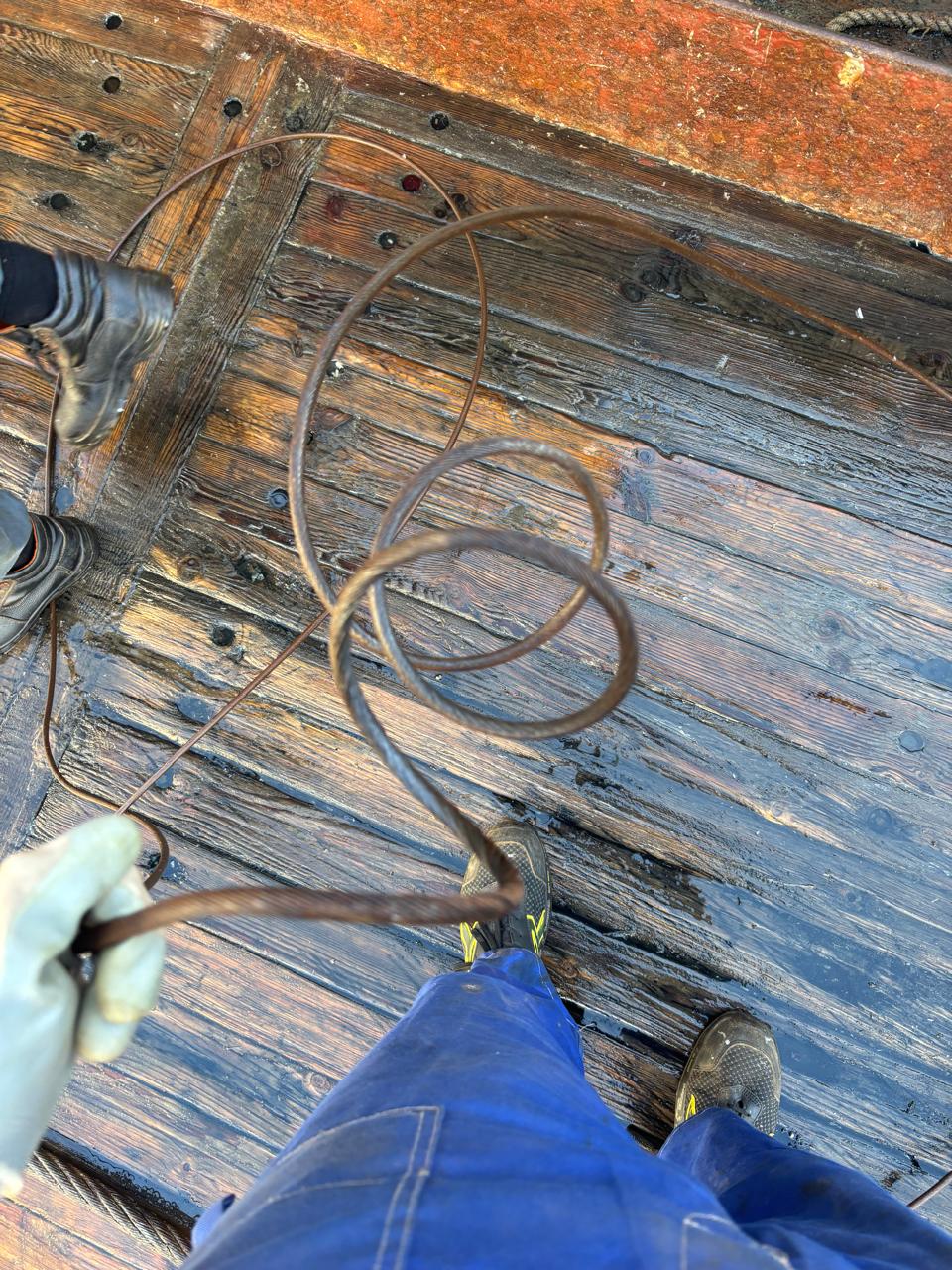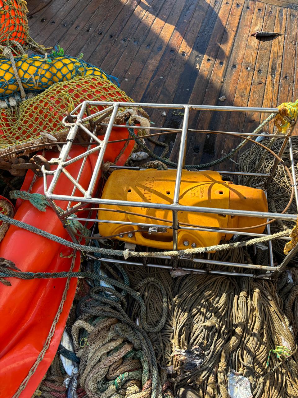 Был поврежден участок кабеля при выборке трала на левом трале FS 70 s/n 1005062. Кабель слетел с ролла и из за этого образовался свиной хвостик. Обрезка кабеля до свиного хвостика 2м и переподключение прибора.Переделка соединения , проверка работоспособности на палубе и в воде. В работе без замечаний.