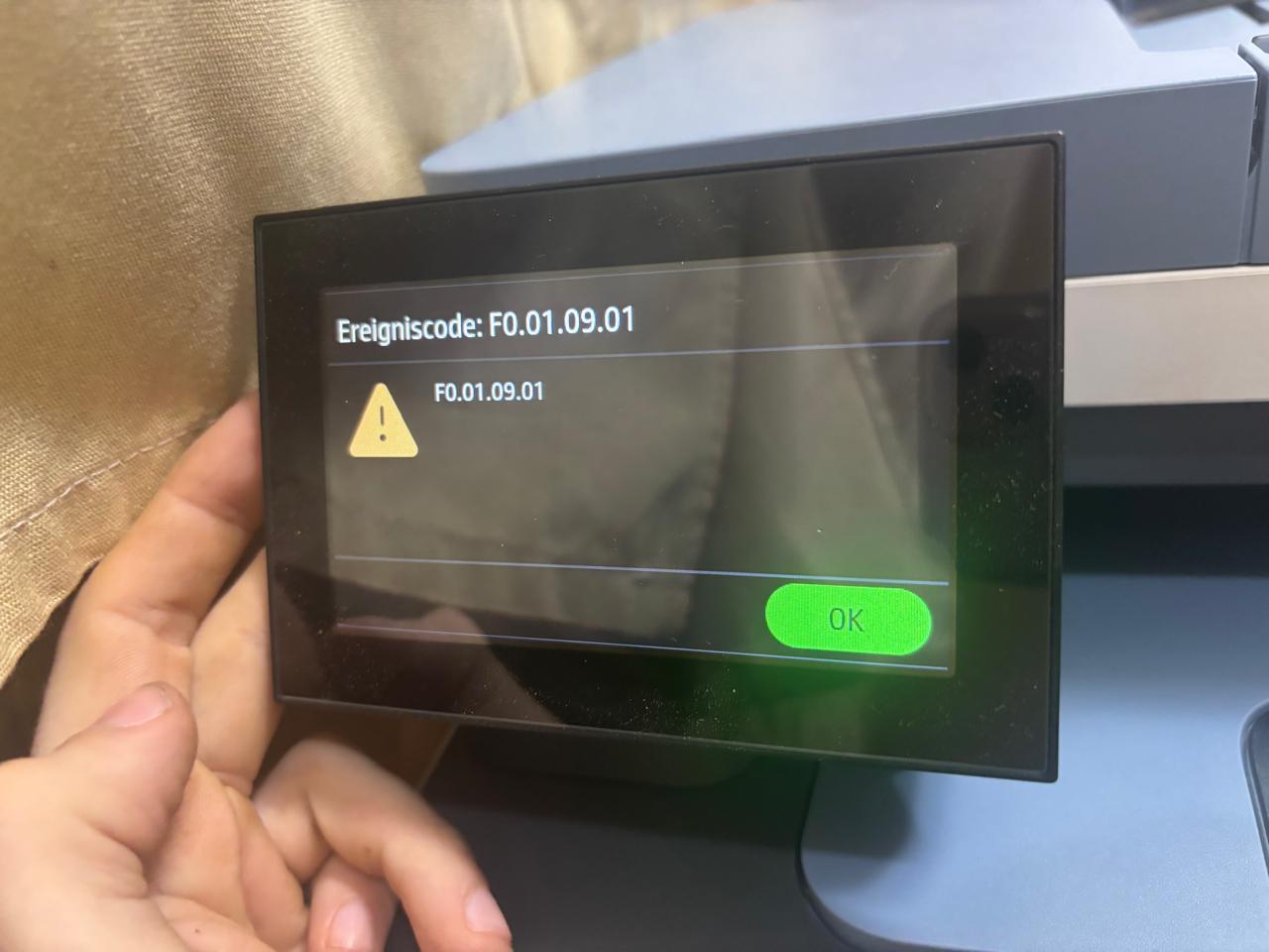 В начале этого месяца при получении снабжения, а именно новых картриджей на принтер HP Color LaserJet Pro MFP 3302sdw не оригинального производства без чипов OEM версии. Из за того что чипов небыло = и замена картриджа была очень затруднительна, что в итоге привело что в попытках снять старый чип с оригинального картриджа сломало его пополам. По этому было принято решение ждать оригинальных картриджей со следующим снабжением. Но пока ожидал принтер встал в ошибку F0.01.09.01.