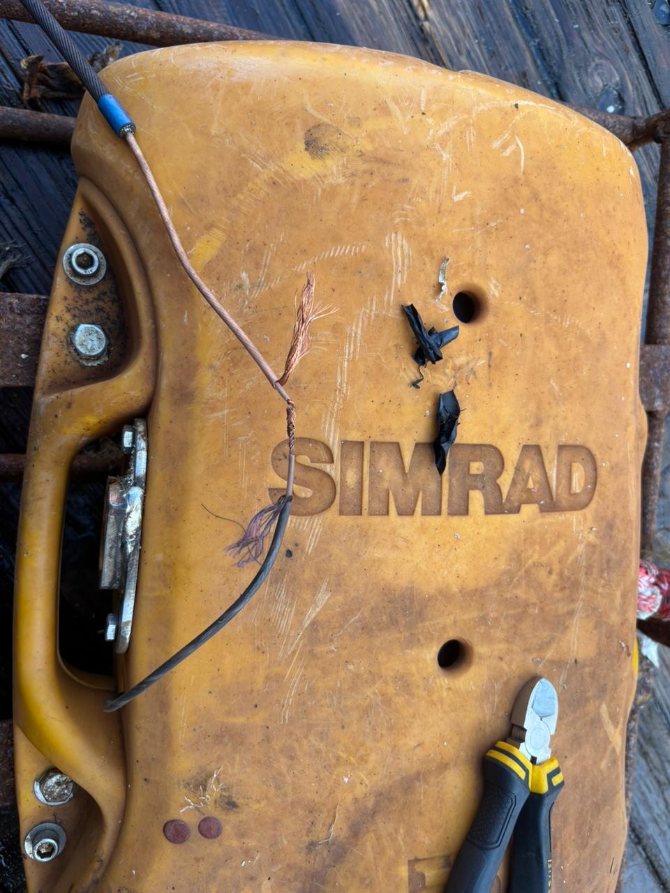Обрыв кабеля во время постановки трала ПБ. Кабель намотан 27.03.2025. Переделка соединения pigtail, проверка работоспособности на палубе и в воде. Вырезано 10м кабеля. В работе без замечаний.