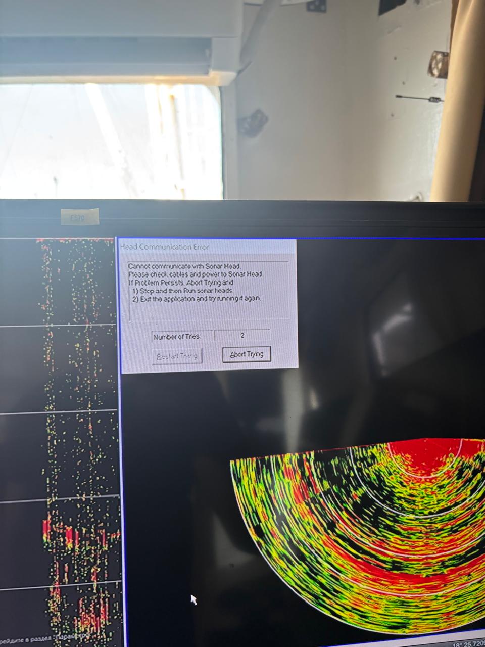 При постановке левого трала как только прибор опустился в воду пошли очень сильные помехи. И начала терятся связь с сонаром на ТЗ. Было принято решение брать до прибора и перевесить с правого трала на левый. Но при дальнейшей постановке произошел обрыв кабеля и на правом приборе. Вырубка 20 м кабеля с ЛБ Экстренно переделано подключение ТЗ s/n 1005062 ЛБ, и дальнейшая постановка трала. Далее было вырублено 40 м кабеля ПБ s/n 0810032 и также переделано подключение к прибору. Переделка соединения pigtail, проверка работоспособности на палубе и в воде. В работе без замечаний.