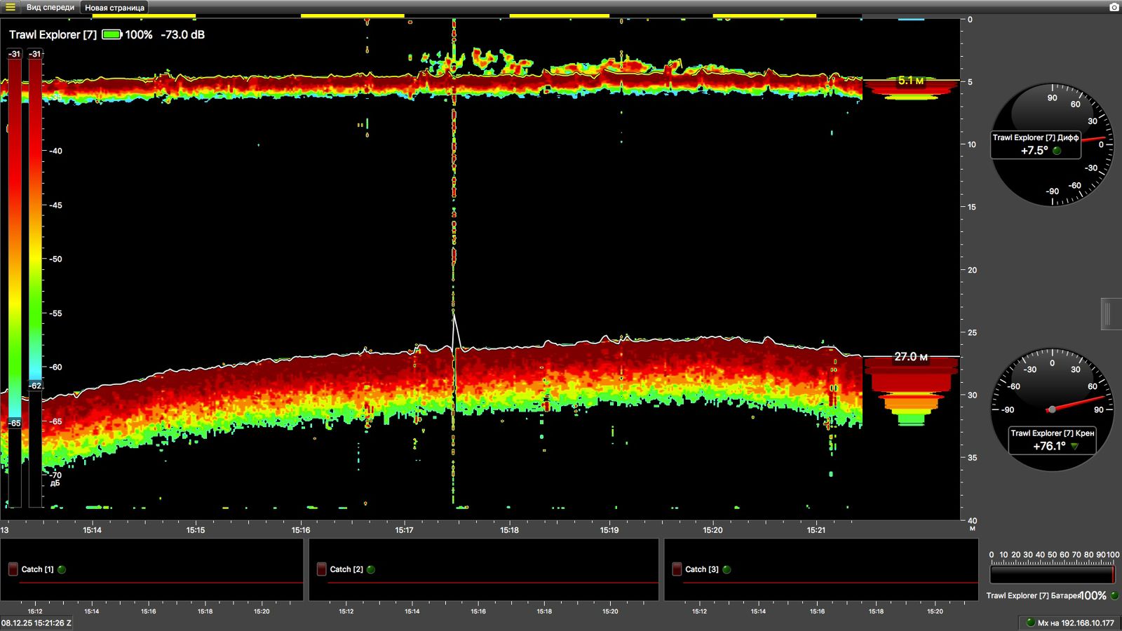 Всем добрый день. После выгрузки , траловый глаз B.ID: 5DC9D44 перестал показывать какие либо данные. Панику бить не стали так как под Килем было около 14 метров. На ночном тралении 07/12/2025 года, под Килем было около 30 метров, и данный траловый глаз все равно не подавал признаков жизни. Утром я забрал пациента к себе на медосмотр.