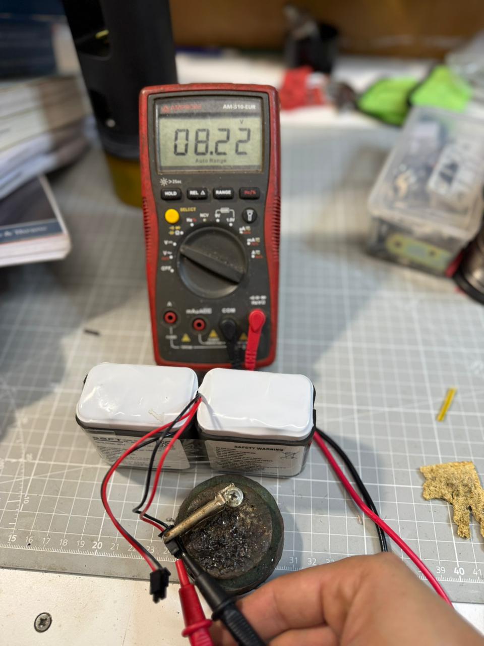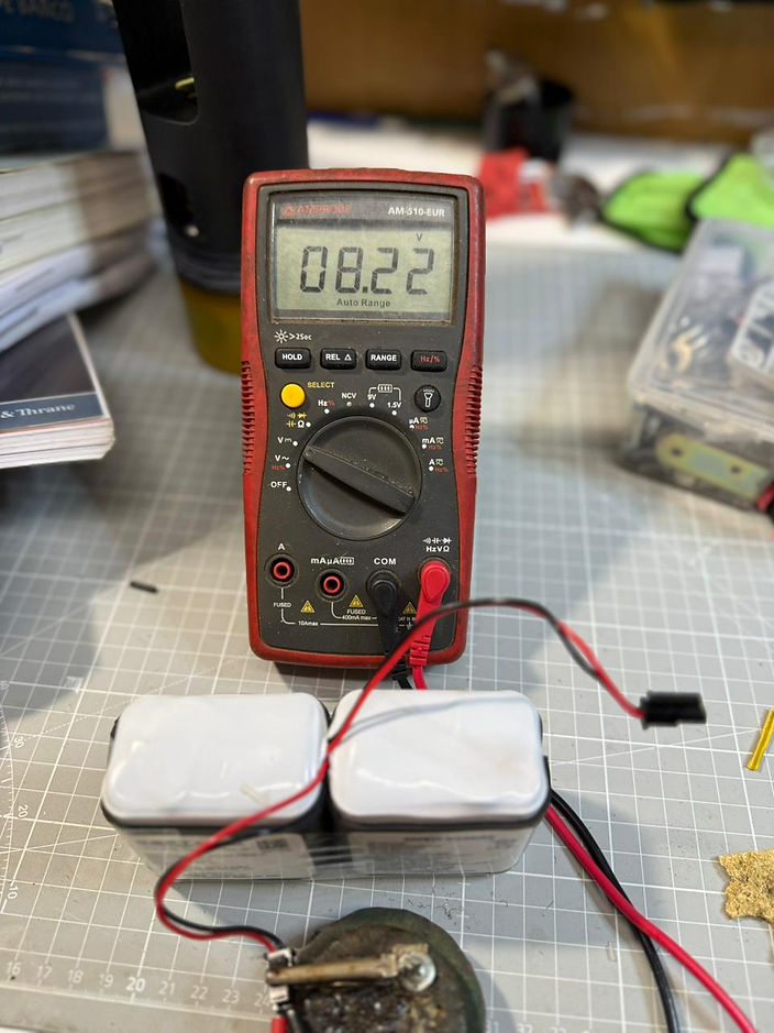 - АКБ исправен, 8.2 В на сборку (Li-Ion 2S1P) — полный заряд (~4.1 В на банку).