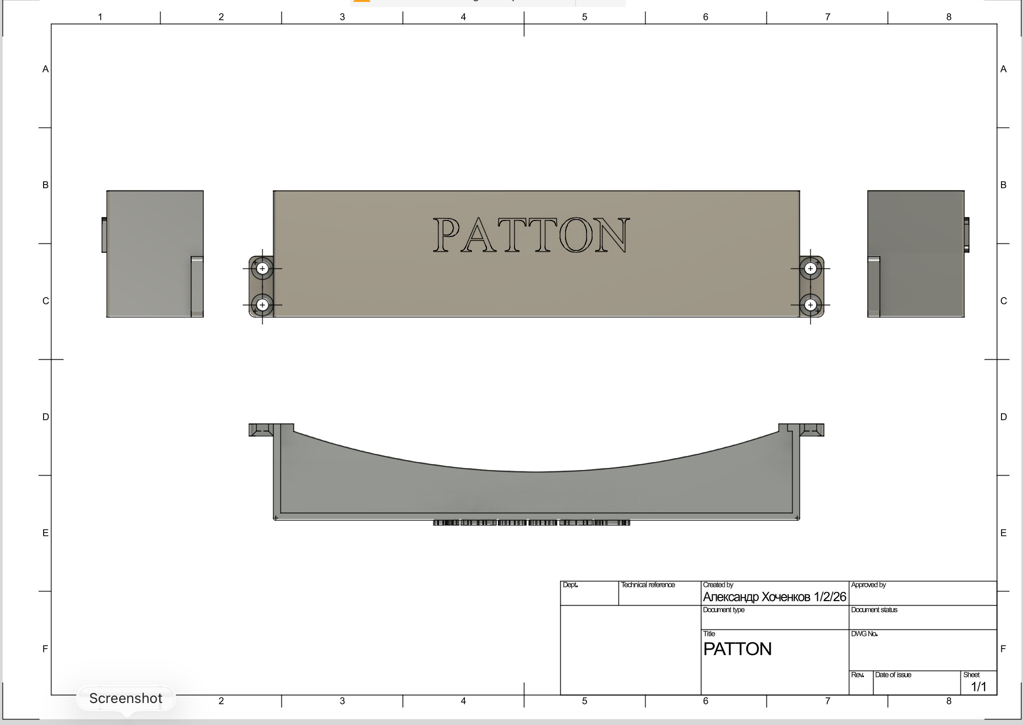 После того, как вот тут творились чудеса непонятных работ и глобального движения извилин, Patton из радиорубки был перенесен в серверную и брошен там на произвол судьбы, максимально Варварски. Устал пинать его ногами и особо притулить его некуда, пришивать его саморезом к железной переборке тоже так себе перспектива. Поэтому быстренько, на глазок сняли размеры, а во Fusion 360 реализовали план капкан что был придуман в голове в новогоднюю ночь, под бой курантов и Фонтаны воображаемого шампанского: