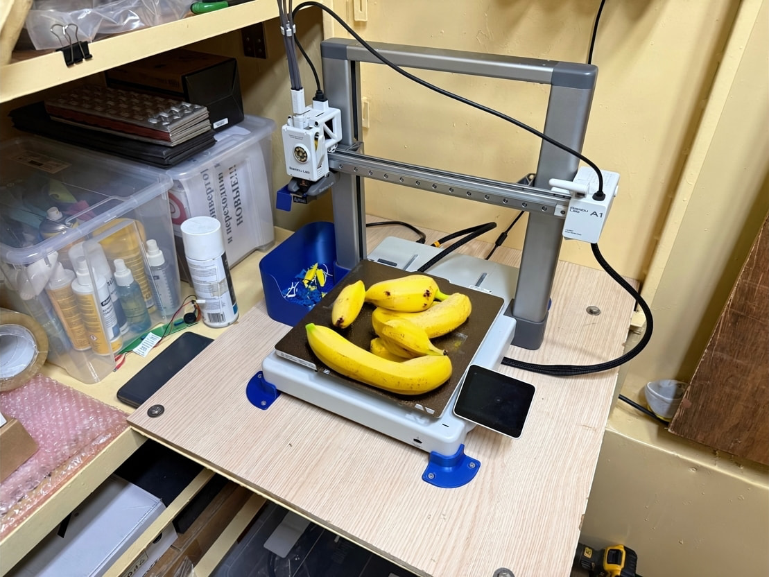 Первый слой отошел от поверхности и напечатался Банан. Шутка конечно, просто Херово очень получилось, так лучше не делайте. Рекомендация: для большой площади печати, не ленимся, мажемся клеем.
