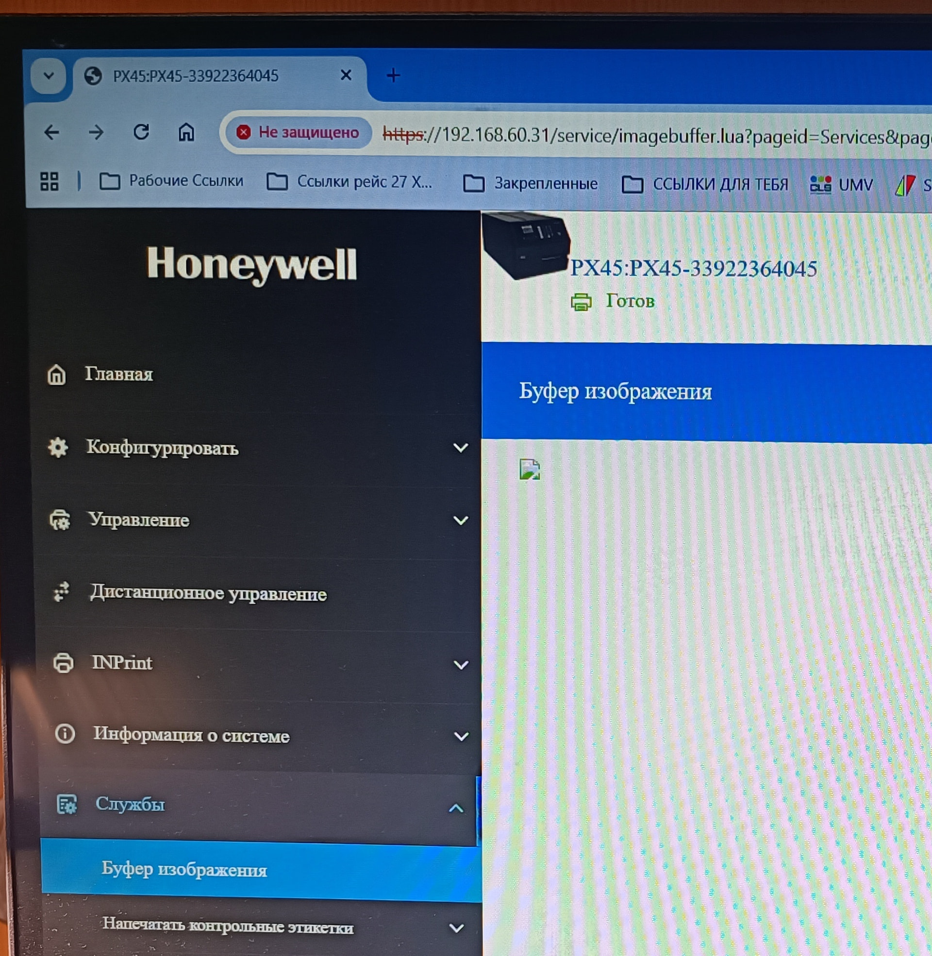 15.02.2026 в 05.00UTC поднят по тревоге, не печатает принтер этикеток правый. Со слов вахтенного первого номера упаковки, затарахтел, самопроизвольно потух. Обследование, неплотно вставлен штекер питания, возможно произошло непреднамеренное отключение питания, запуск, принтер загрузился, попытка печати из Print Station, этикетка не печатается. На принтере: