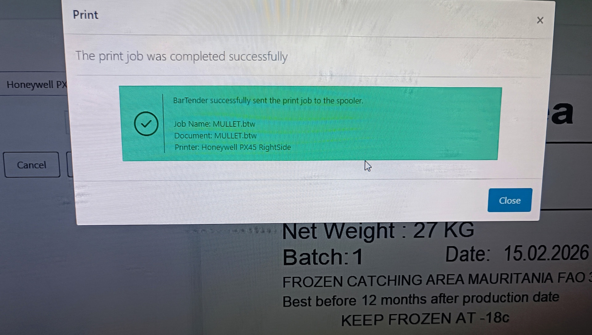 Перезагрузка проги Bartender, принтера, PLC - этикетка не выходит. Нет в буфере.