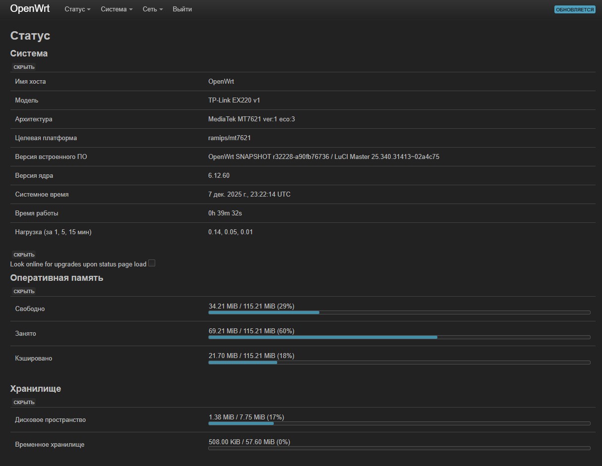 Ну и инсрукции. Основаная инсрукция расположена на официальном сайте open WRT Testing to determine if you are a bot! и дополнительную я нашел на giyhub openwrt_ex220_windows_guide.md · GitHub c комментариями и возможными дополнительными встречными костылями.
