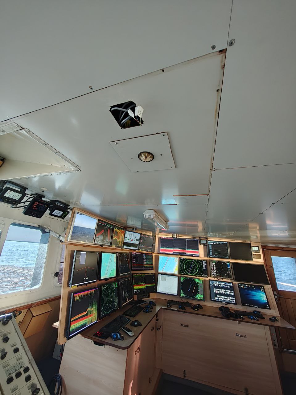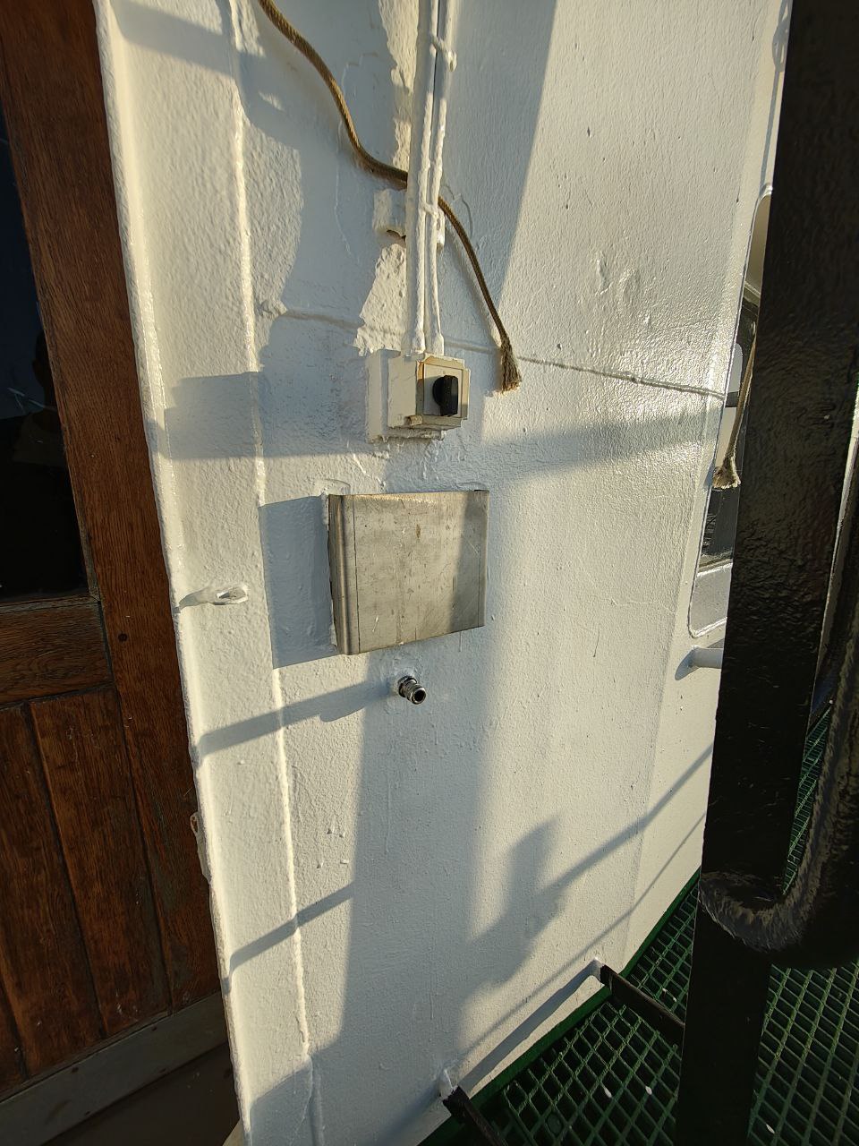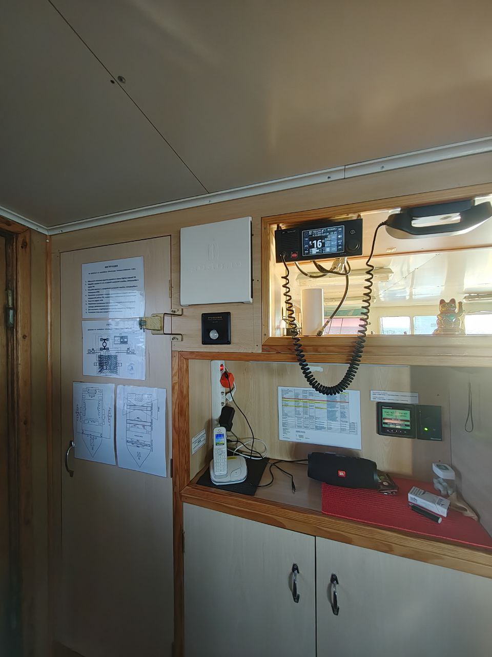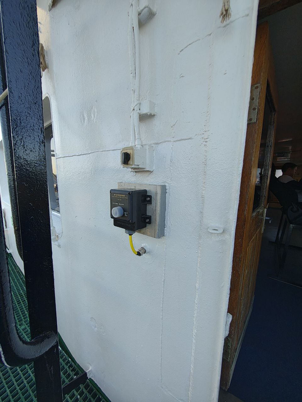 На борту FISHING KORAL данное оборудование установлено следующим образом. Коммутационную коробку я установил над трапом подъема на мостик (см. фото). Для коммутации достаточно использовать Ethernet UTP кабели к каждому датчику. К внешним кнопкам лучше использовать кабели помассивнее или например просто Ethernet UTP outdor в двойной броне. Я использовал обрезки кабелей от гидрофонов, как пример.