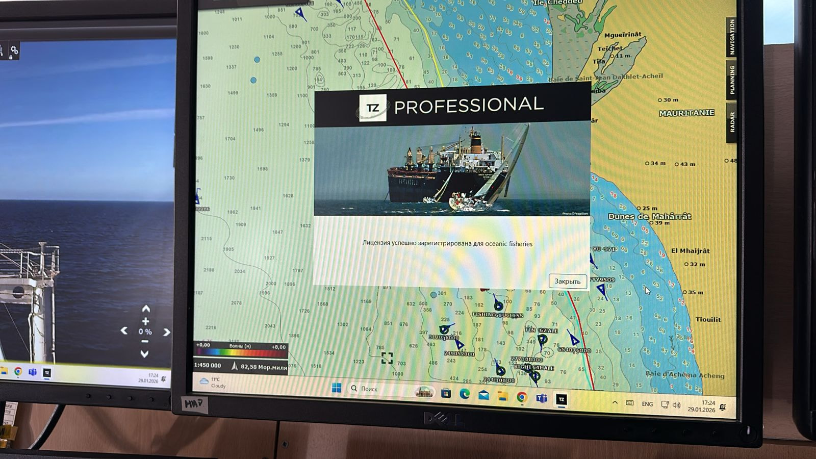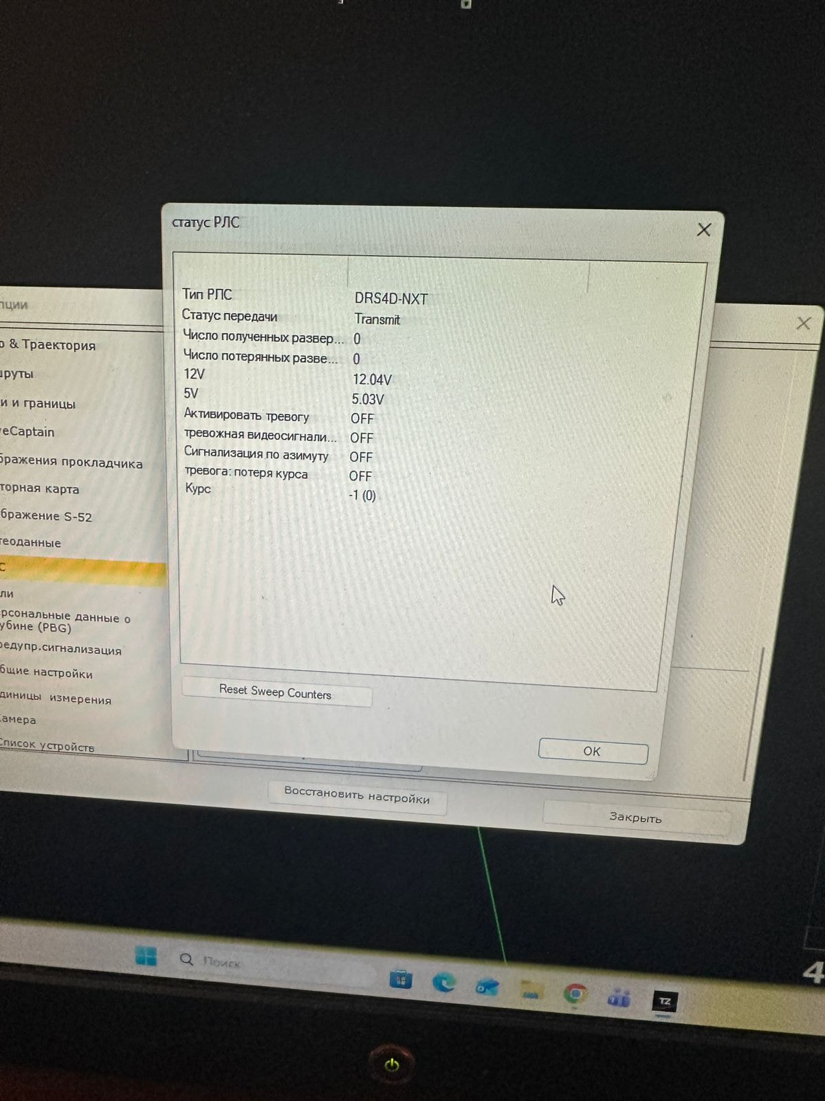 Открой окно РЛС → должна появиться развертка.