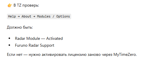 После установки другого ПК на радаре при включении TRX нет разверток