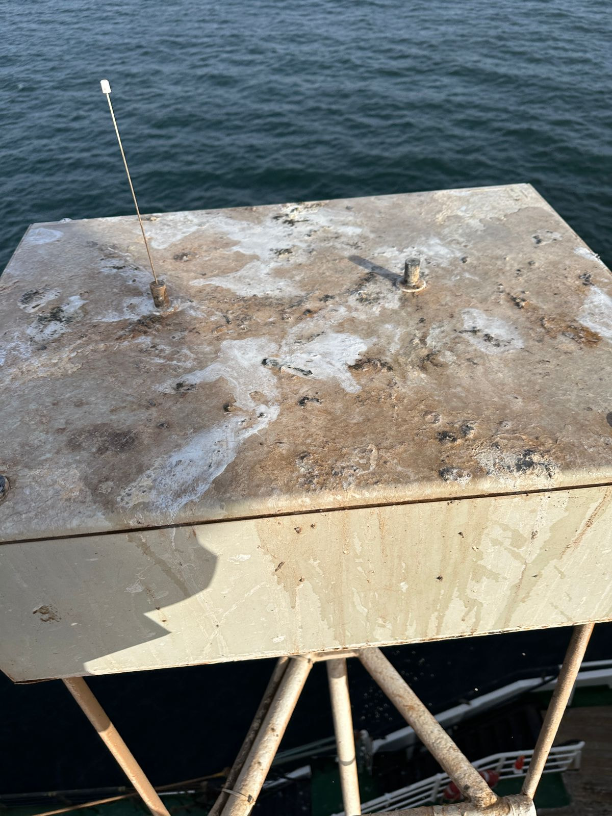 При внутреннем осмотре на кормовой стенке короба(ПБ) обнаружил подтёки.