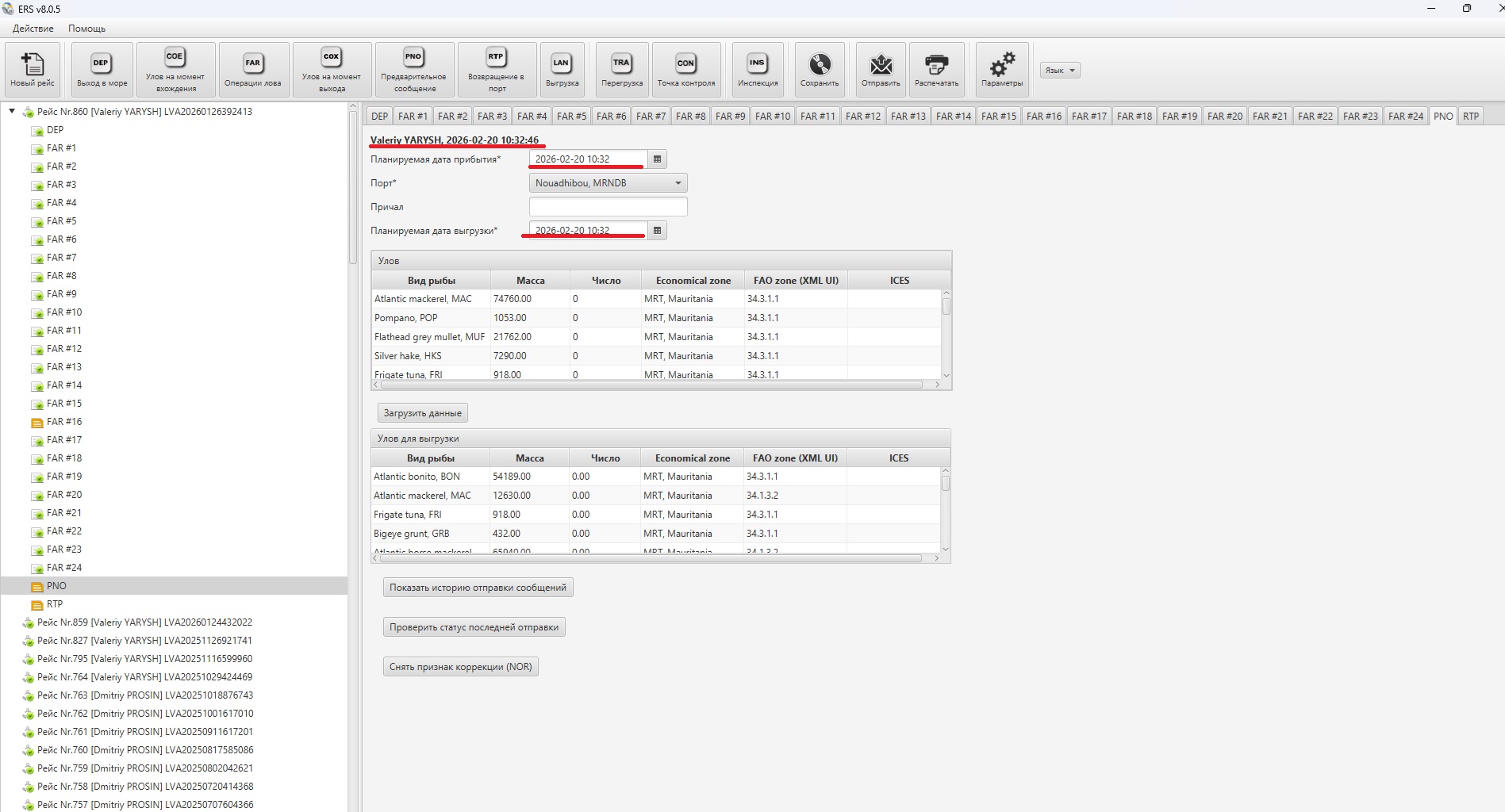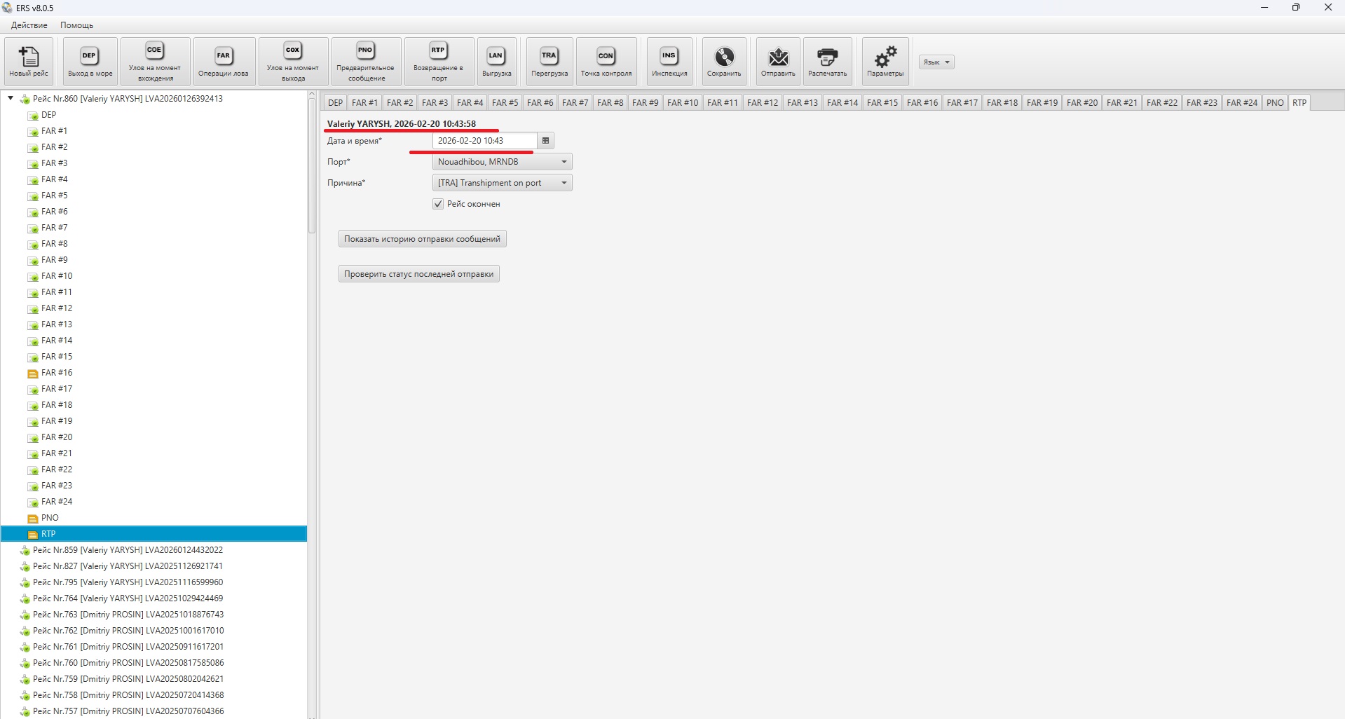 Сегодня при заполнении форм PNO и RTP в журнале ERS столкнулся с проблемой, что программа, при сохранении формы сохраняет установленное дату и время планируемого прибытия и фактического, но после отправки и в распечатке PDF файла сбрасывается на время создания формы.